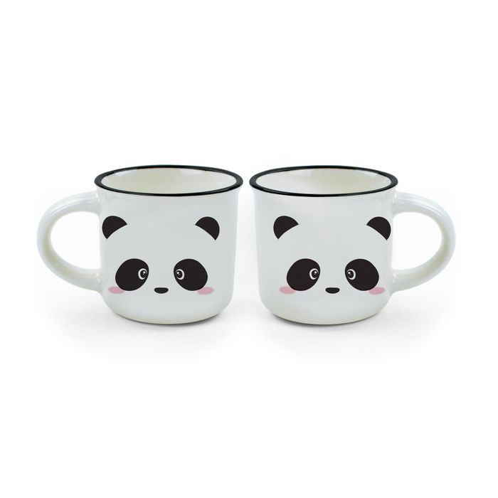 Legami - Espresso For Two - Set of 2 New Bone China Coffee Mugs 50 mL - Panda