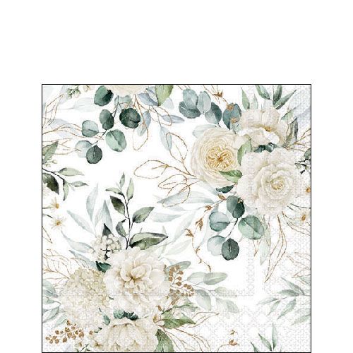 Ambiente - Paper Napkins - Pack of 20 - Cocktail Size - Eucalyptus & Roses