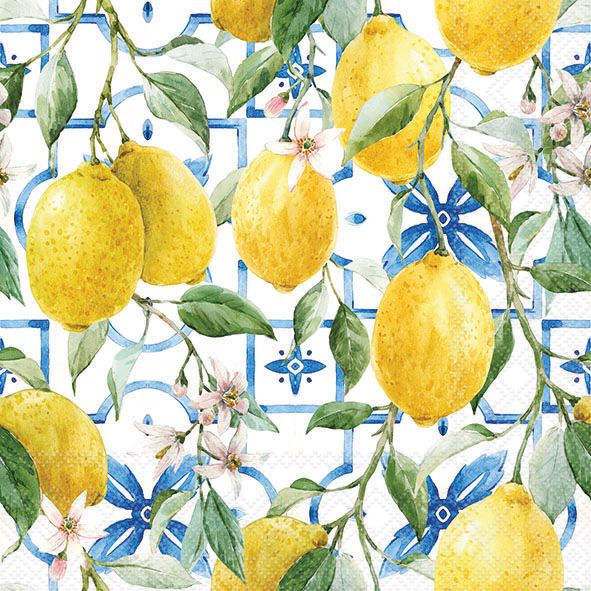 - Ambiente - Paper Napkins - Pack of 20 - Luncheon Size - Mediterranean Lemons