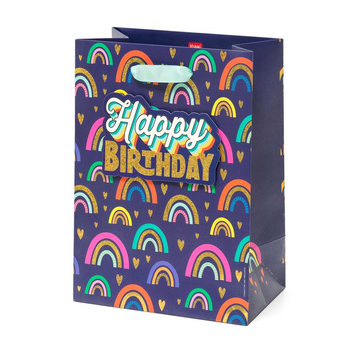 • Bag made from matte laminated paper 210 g/m², printed with UV varnish or foil, ribbon handles • 19 x 25 x 11.5 cm