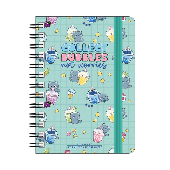 Legami - 2027 Daily Spiral Bound Diary - Small - Kitty Bubble Tea