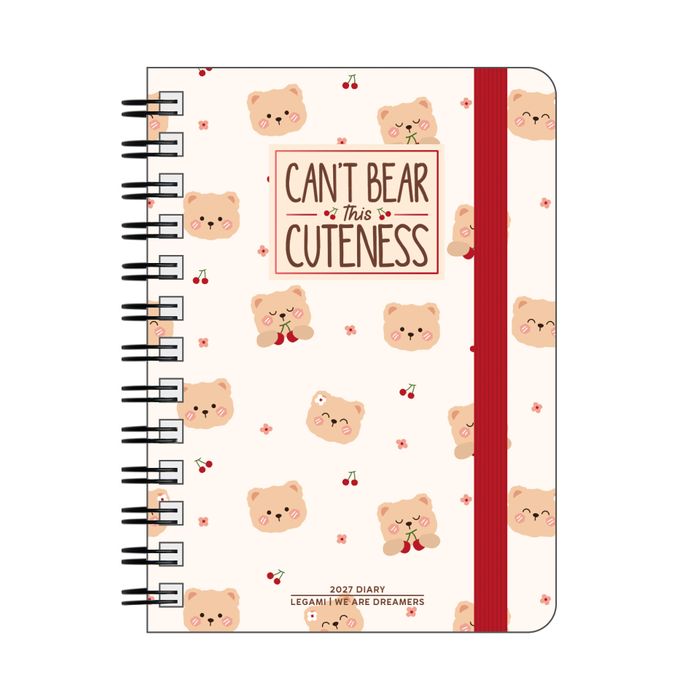 - Legami - 2027 Daily Spiral Bound Diary - Small - Teddy Bear Cherry