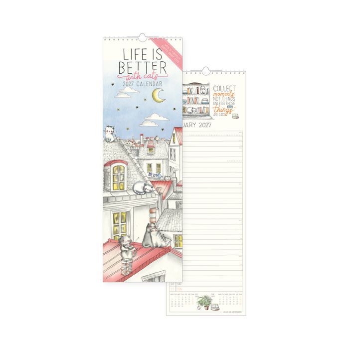 - Legami - 2027 Wall Calendar - Uncoated - 18 x 49 cm - Sketchy Cats