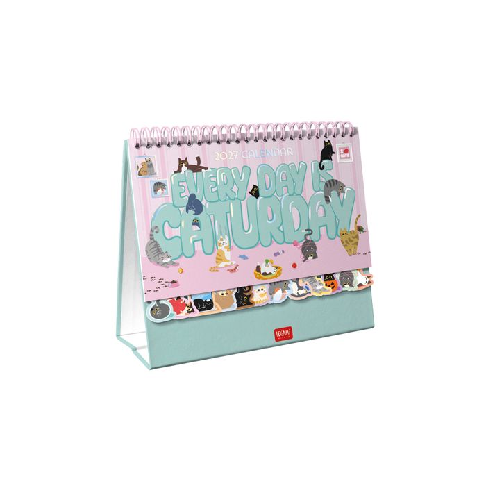 - Legami - 2027 Desk Calendar with Stickers - Every Day is Caturday