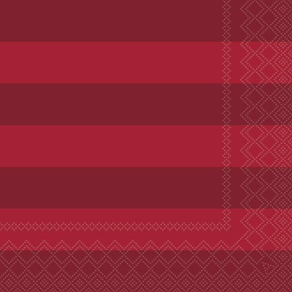 - Ambiente - Paper Napkins Christmas - Pack of 20 - Luncheon Size - Block Stripe - Dark Red