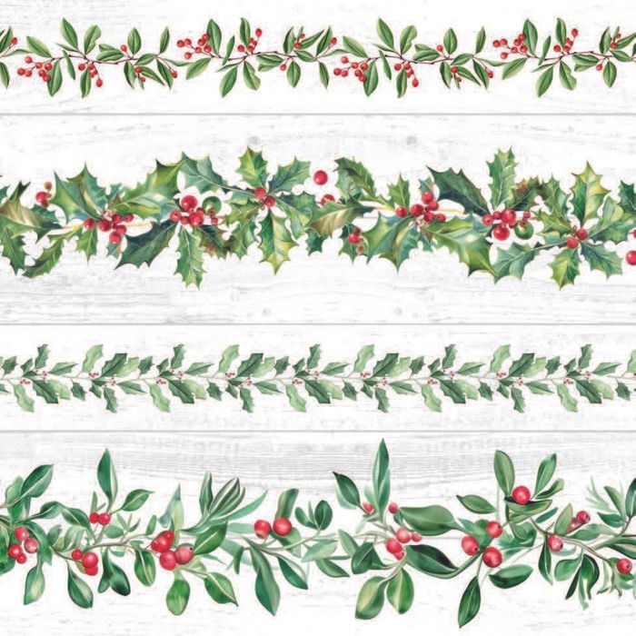 - Ambiente - Paper Napkins Christmas - Pack of 20 - Luncheon Size - Leaf Garlands - Grey