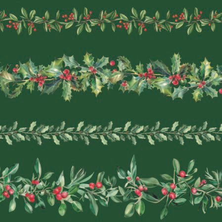 - Ambiente - Paper Napkins Christmas - Pack of 20 - Luncheon Size - Leaf Garlands - Green
