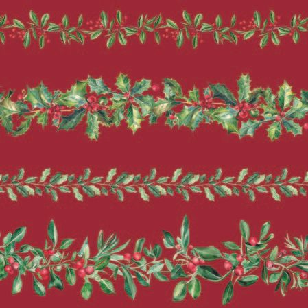 - Ambiente - Paper Napkins Christmas - Pack of 20 - Luncheon Size - Leaf Garlands - Red