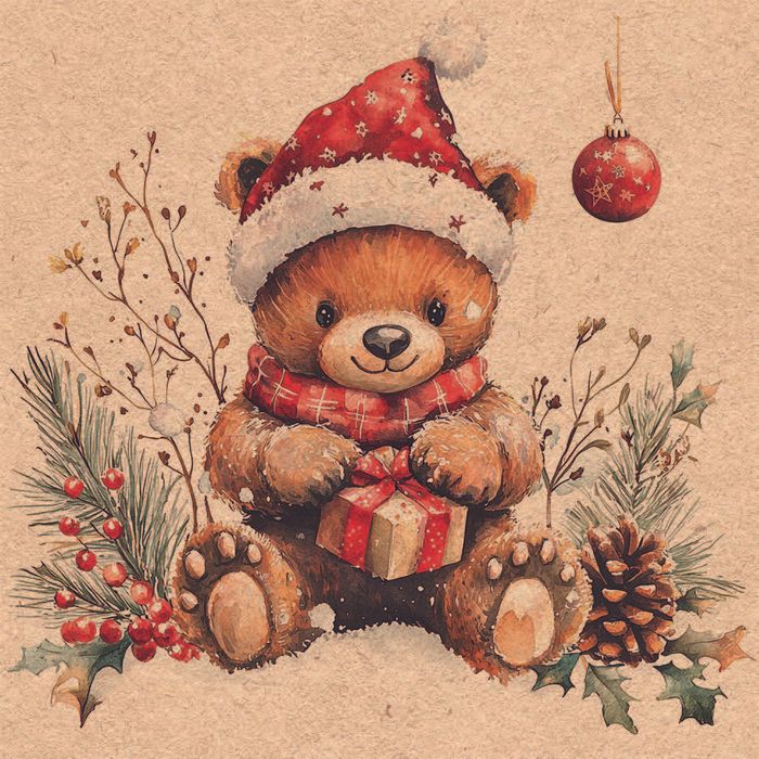 Ambiente - Paper Napkins Christmas - Pack of 20 - Luncheon Size - Recycled Teddy's Gift
