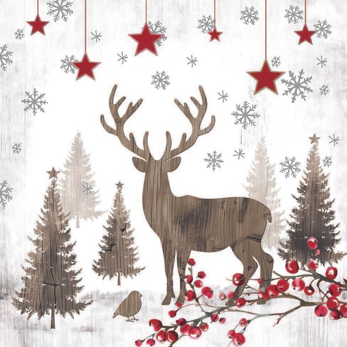 - Ambiente - Paper Napkins Christmas - Pack of 20 - Luncheon Size - Wooden Deer