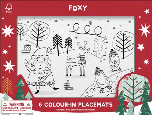 - Each pack contains 6 double-sided placemats & a pack of colouring crayons