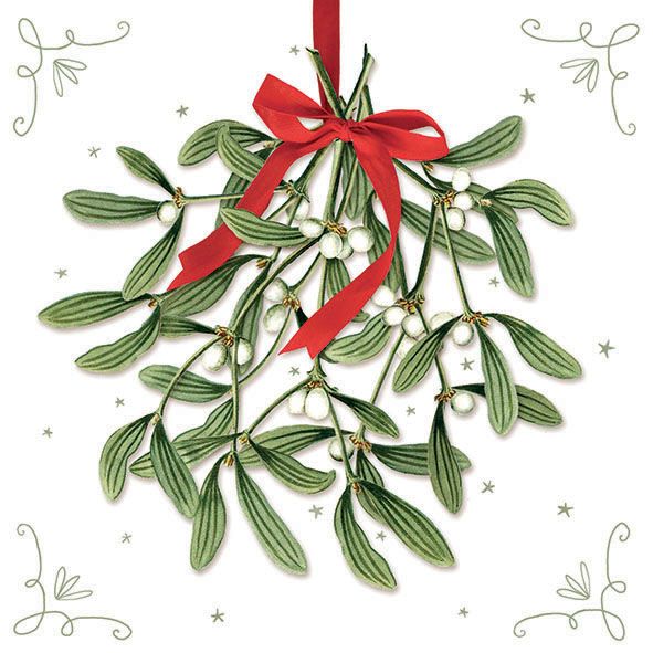 - Ambiente - Paper Napkins Christmas - Pack of 20 - Luncheon Size - Mistletoe With Bow White