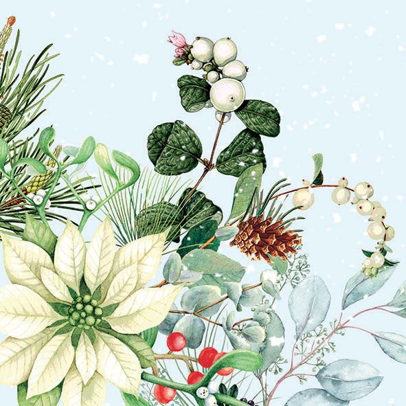 - Ambiente - Paper Napkins Christmas - Pack of 20 - Luncheon Size - White Poinsettia