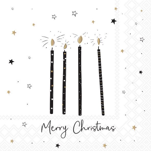- Ambiente - Paper Napkins Christmas - Pack of 20 - Luncheon Size - Xmas Candles - Black