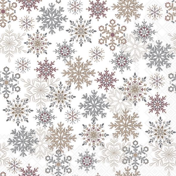 Ambiente - Paper Napkins Christmas - Pack of 20 - Luncheon Size - Snowflakes All Over - White