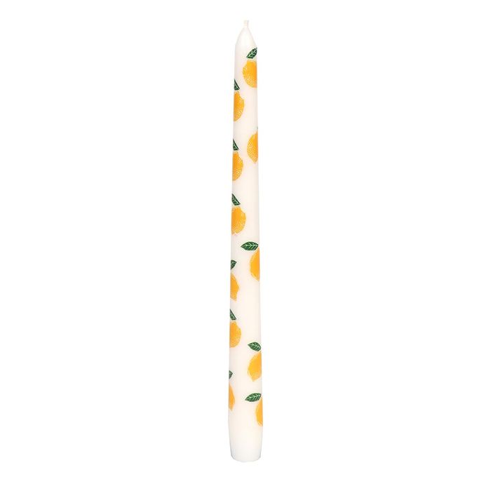 Add some zest to your sunshine gatherings. Each pack of Bon Appetit Lemon Tapered Dinner Candles contains a pair of sleek white candles with a fruity lemon pattern throughout. They are manufactured unscented as not to compete with delicious food aromas.