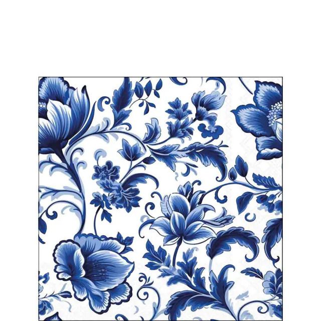 Ambiente - Paper Napkins - Pack of 20 - Cocktail Size - Delft Blue Florals