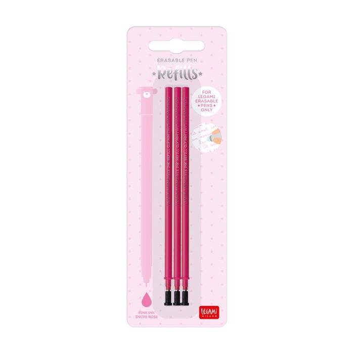 Legami - Erasable Gel Pen Refills Pack of 3 - Pink Ink